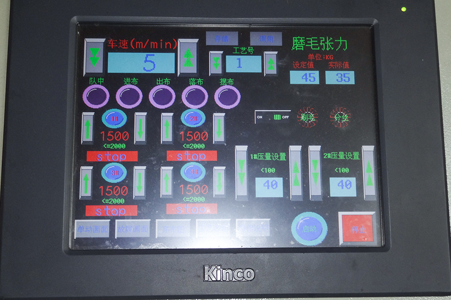 el LMH815 features a multi-dimensional adjustable control system that allows precise adjustment of key parameters such as line speed, grinding head speed, and sanding pressure. Users can customize sanding depth and surface effects based on fabric thickness, elasticity, and final product requirements, easily achieving a variety of finishes from a delicate and soft velvet to a short, dense matte finish. This parameter flexibility not only meets the personalized needs of fabric production but also provides more possibilities for fabric development and innovation, enabling the production line to quickly respond to diverse market changes and increase product added value.