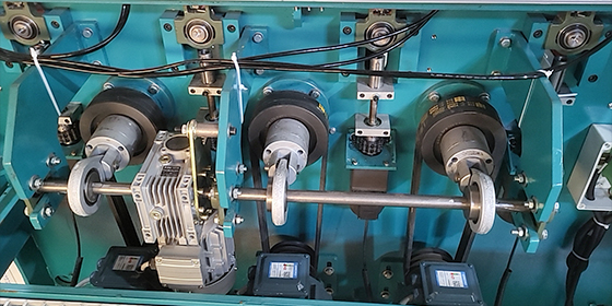 el lateral motion mechanism emphasizes durability and ease of maintenance: el MW model sueding machine's lateral motion system utilizes high-quality materials and a modular structure, ensuring mechanical stability and durability under long-term, high-intensity production conditions. This mechanism enables precise oscillation of the fabric widthwise, ensuring uniform contact between the roller and the fabric and eliminating uneven edge sueding.To facilitate maintenance, Huayi has optimized the disassembly, assembly, and lubrication of the lateral motion mechanism. Using quick-release components and a low-maintenance design, maintenance personnel can quickly complete cleaning, lubrication, and replacement tasks, minimizing downtime. This not only reduces maintenance costs but also ensures efficient production line operation.